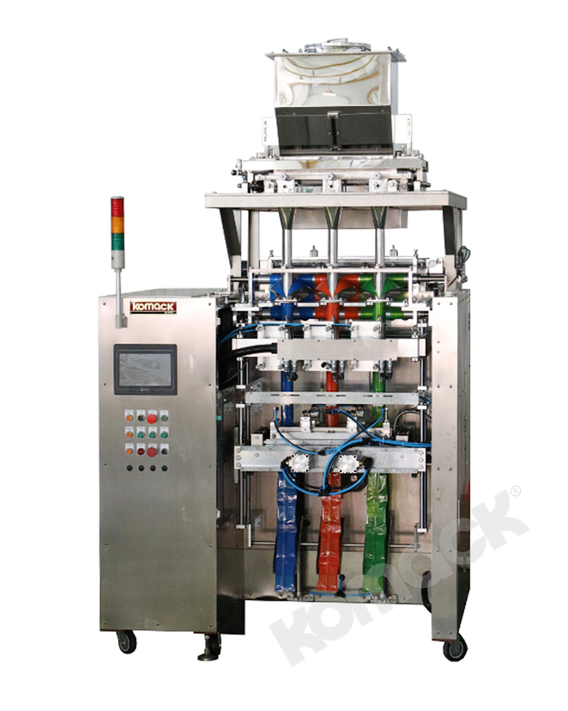 2.This machine can pack different kinds of product in the same time for each lane, (depending on measuring devices).